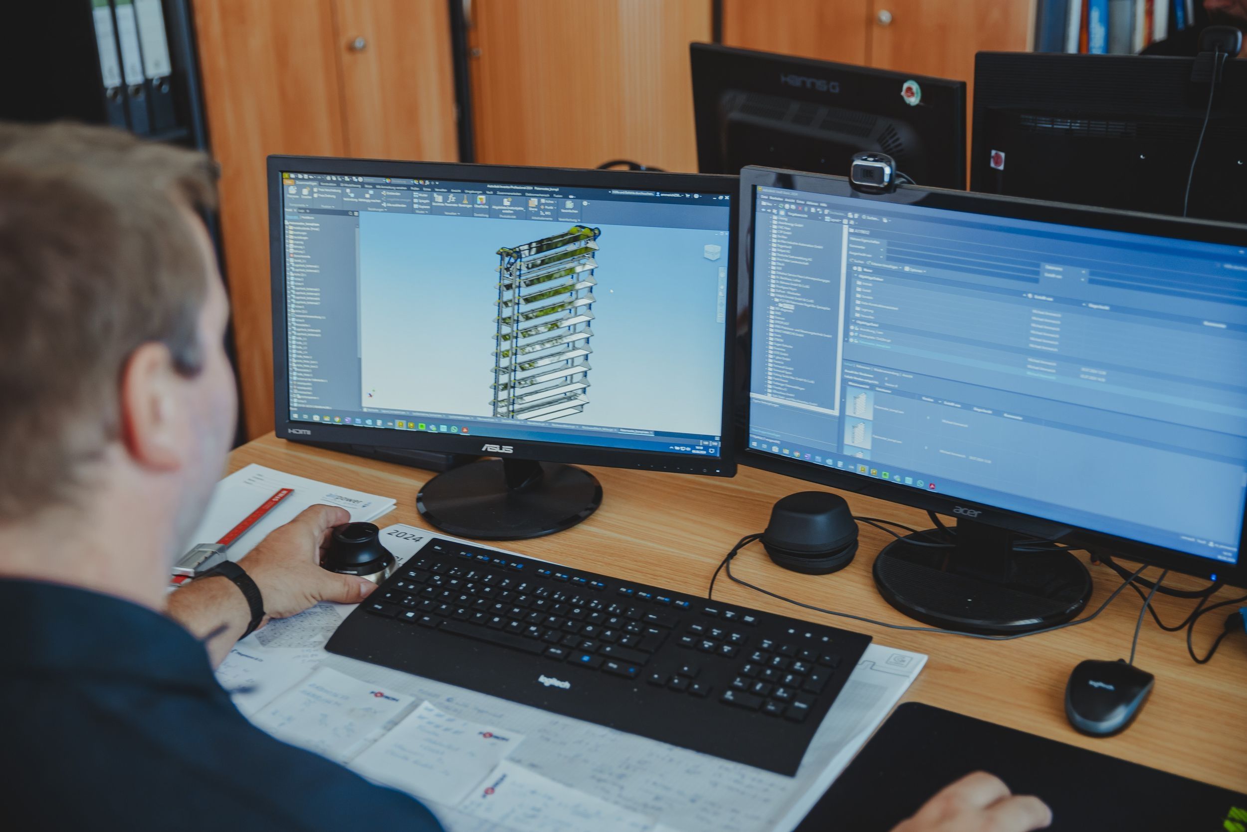 - 3D-Modellierung in „Autodesk Inventor“ (jeweils aktuelle Version) – die gesamte Anlage kann vor der Fertigung in 3D betrachtet, analysiert und optimiert werden